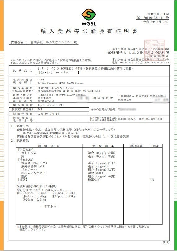また、本製品はFDA(アメリカ食品医薬品局)と日本の厚生労働省が定めた基準に適合する輸入食品等検査証明を受けております(上記画像参照)