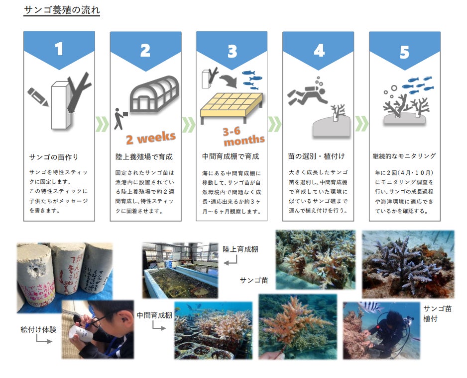 ※少しでもサンゴが多くのサンゴが育つように、時期・植付けを行う場所の選定は適切に行わせて頂きますが、全部のサンゴが確実に育つというわけではありません。植付け前の育成している段階で死んでしまうサンゴもいます。予めご了承ください。