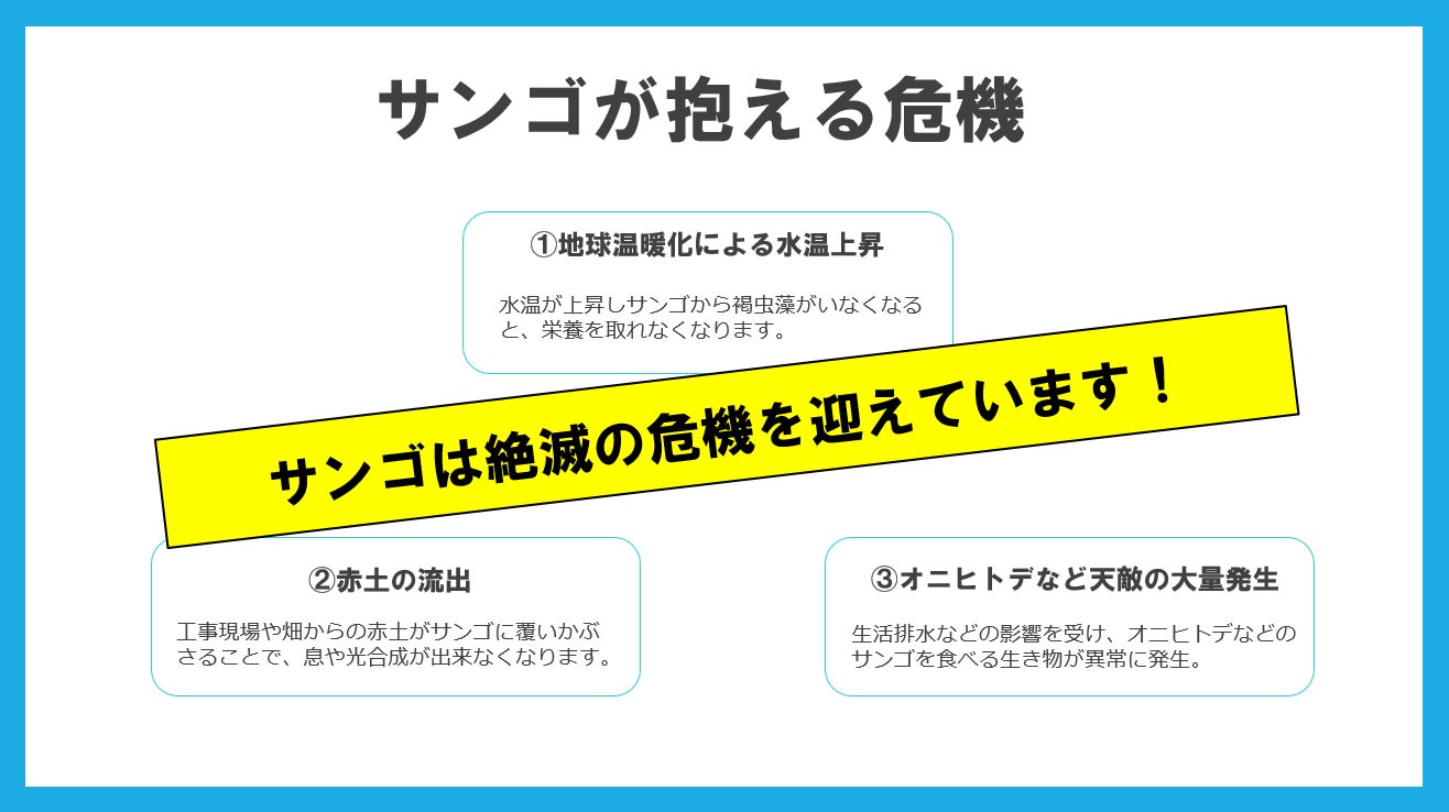 そのようにしてサンゴの事、海の事を想う方が増えればと思っています。