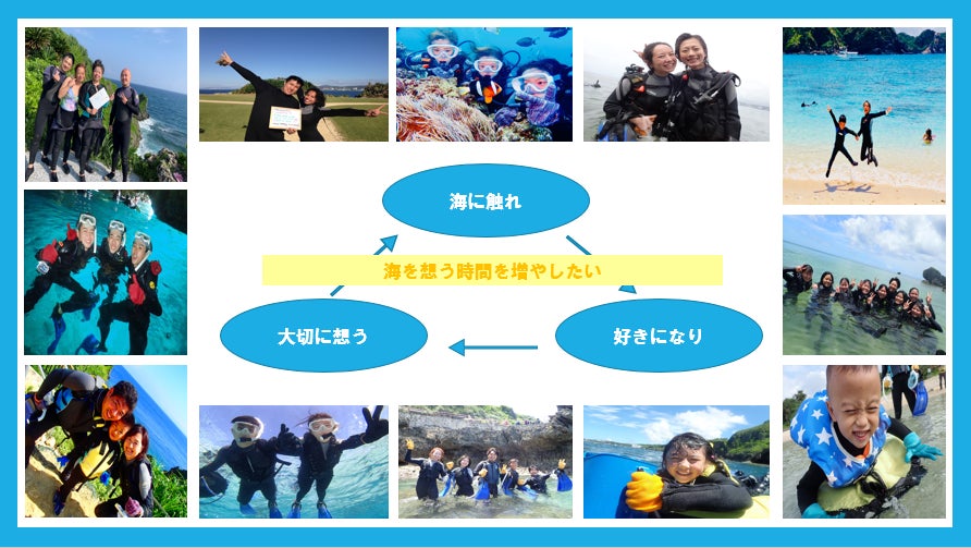 ナチュラルブルーは、「人と自然の懸け橋に」を合言葉に、世界中の人が海を好きになってくれることを志し、海で世界をハッピーにしようという想いのもと海の魅力を沢山の方に伝えています。