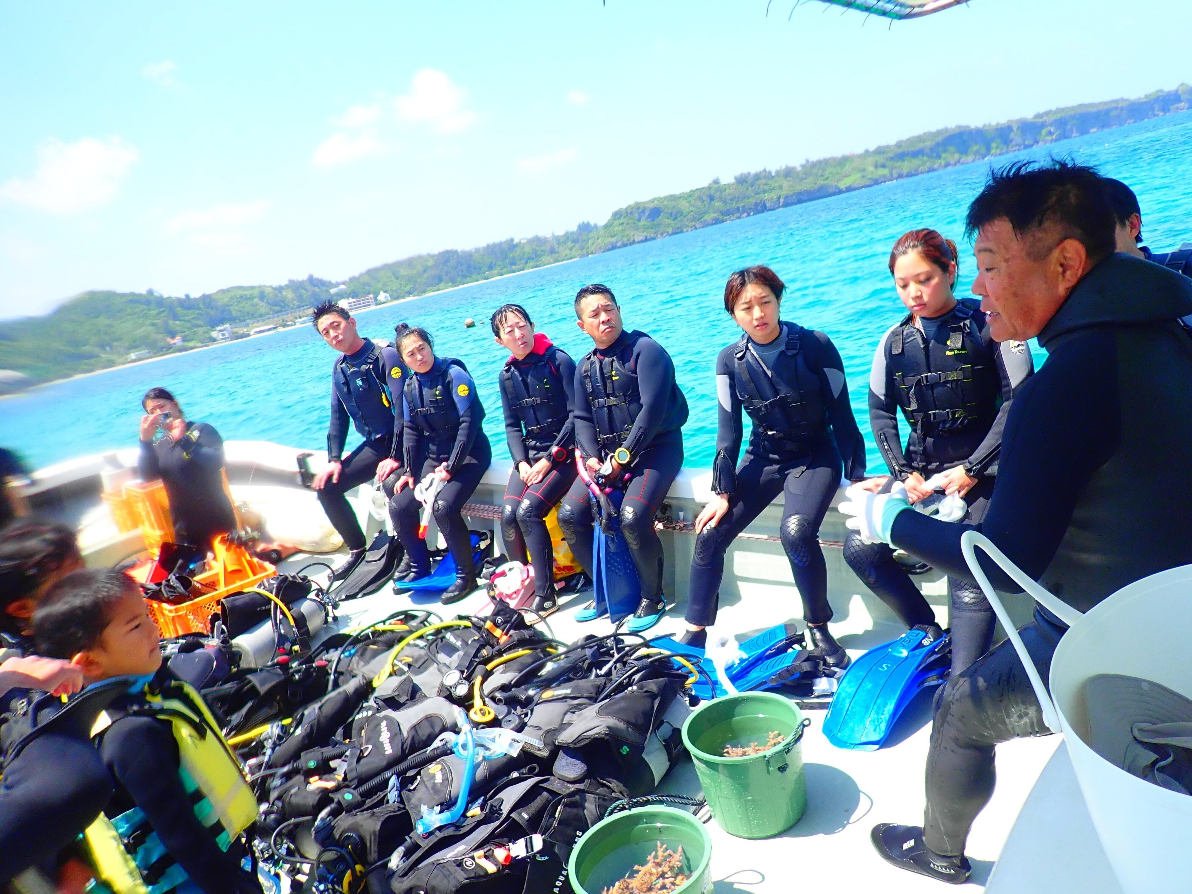 前回のサンゴの植付けは我々スタッフのみで行ったのですが、今回はFUNダイビング11名、シュノーケル5名とたくさんの方と一緒に植付けを行う事ができたので、非常に嬉しく思います!