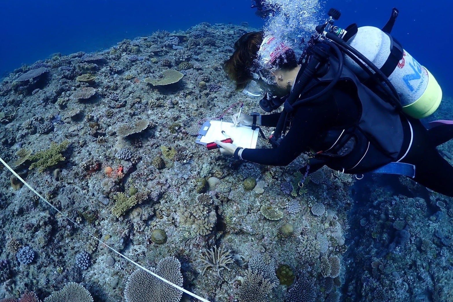 昨日、恩納村万座エリアでリーフチェックを行ってきました!「リーフチェック」とは、世界のサンゴ礁が今どのような状況にあるかを比べるための世界共通のサンゴ礁の調査のことです。今回は、沖縄県恩納村万座エリアで行ってきました!ダイビングポイントとして有名な『万座ドリームホール』『ミニドリームホール』のちょうど間ぐらいの場所です。人気の高いダイビングポイントだけあって、サンゴ礁が沢山広がっており、色んな生物を観察することが出来ました!調査中にウミガメやネムリブカというサメも出てきて、調査そっちのけで泳ぎだしそうになりました!わらありがたいことに、私たちはこのポイントのようなサンゴが沢山あるポイントを潜ることが出来ているのですが、今回の調査結果をデータだけで見た方はすごく驚くんじゃないかと思います。それぐらい、世界で見てもサンゴの量が圧倒的に多い調査結果になっています。このサンゴを未来に残せればと思います。港に帰る前に、恩納漁港の漁師さん達が長い年月をかけて行っているサンゴ養殖のサンゴたちを見てきました!20年以上にもなるサンゴたちは本当に大きく育っており、様々な種類のサンゴがいて圧巻でした!このようなサンゴ畑を私たちも作っていければと思います。
