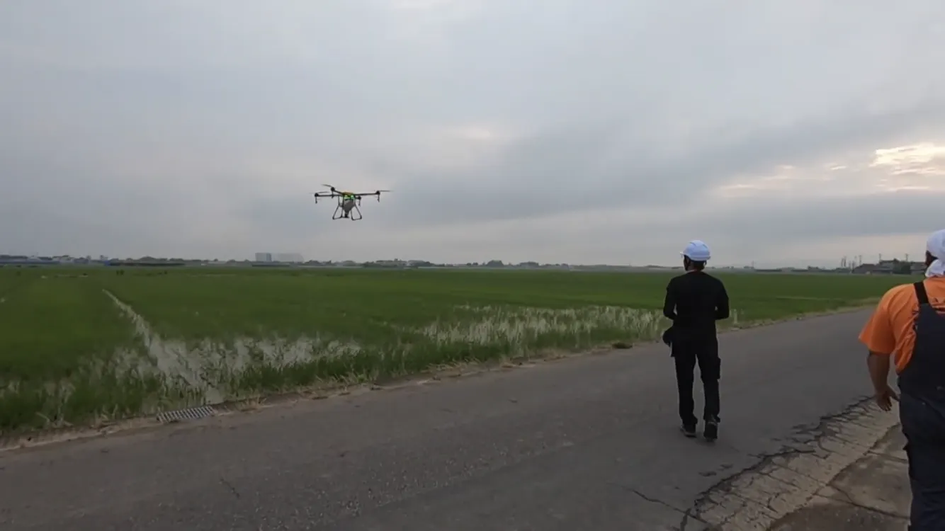 そこで私たちは出穂のタイミングに合わせた防除をドローンで行います。