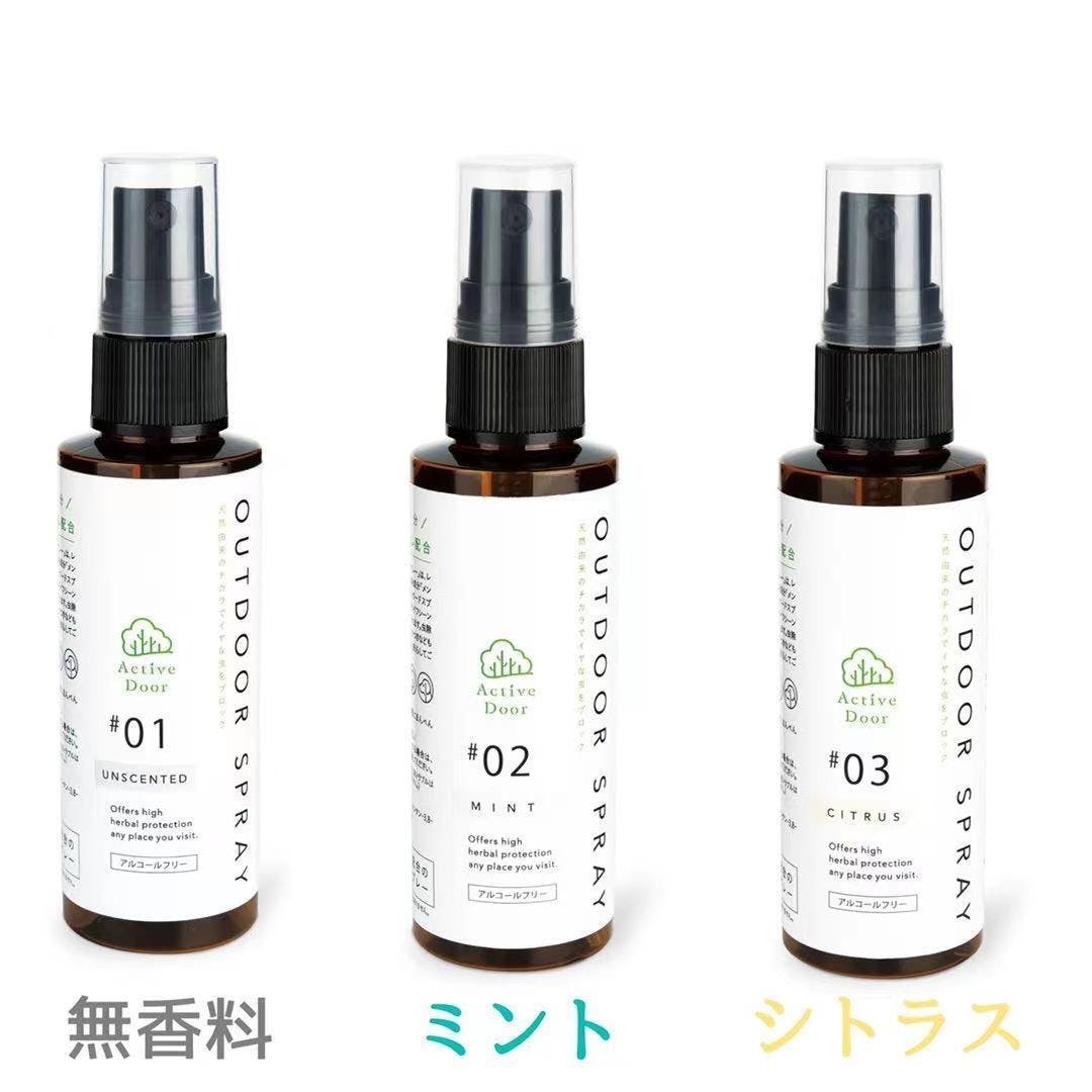 虫除けスプレー特有のキツイ臭いが全くしない。すっきりとした香りの中に甘い香りを感じる″ミント”とフレッシュ感溢れる柑橘の爽やかな香り“シトラス”。香りが苦手な方は、無香料がおすすめ!