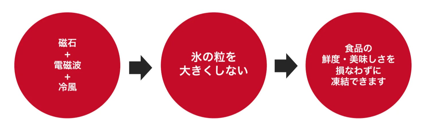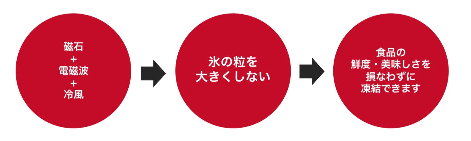 冷風に均等磁束および電磁波をハイブリッドした急速凍結(冷凍)技術です。
