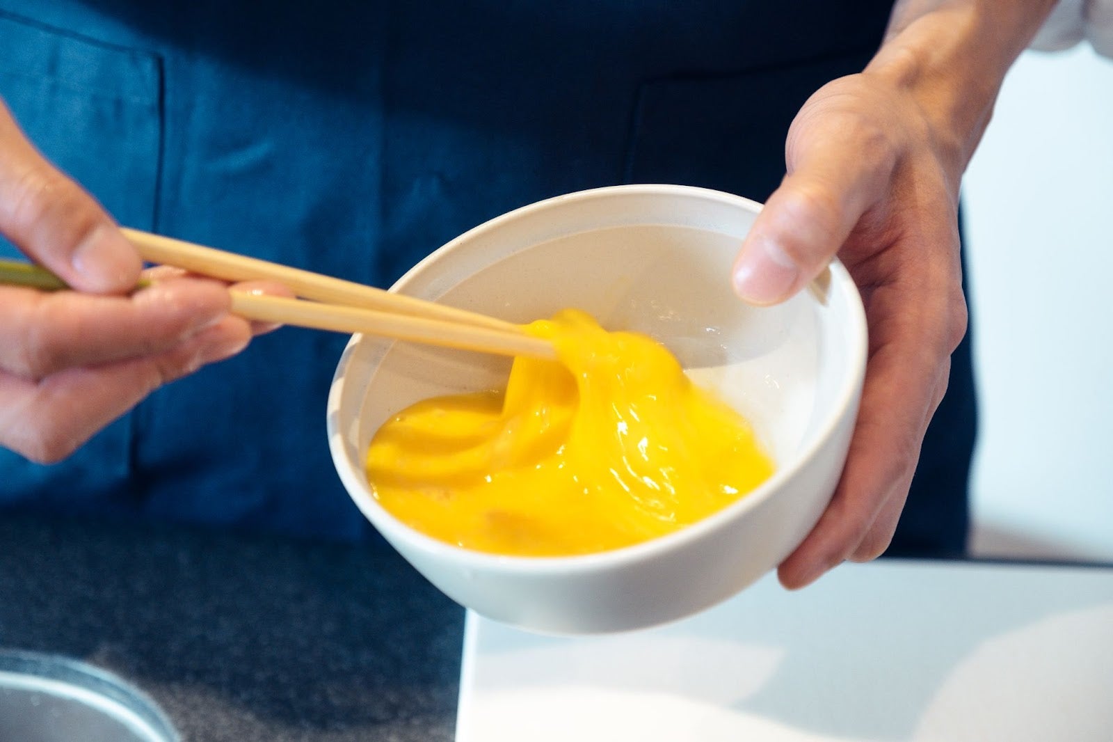 ③卵を混ぜる。かき混ぜすぎないように要注意!