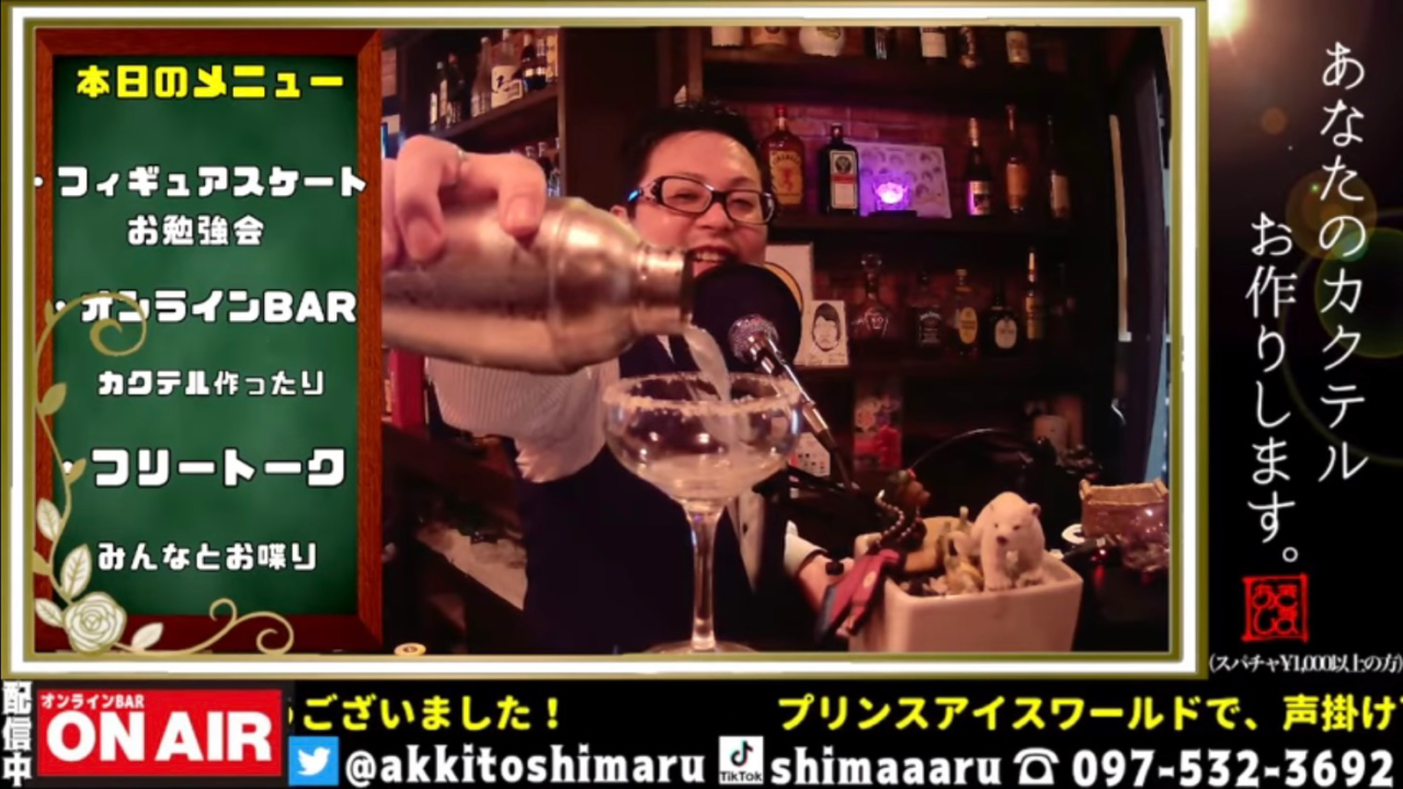 ライブ配信ではカクテルを作ったり視聴者さんとのコメントでのやり取りをしながら楽しく配信してます♪