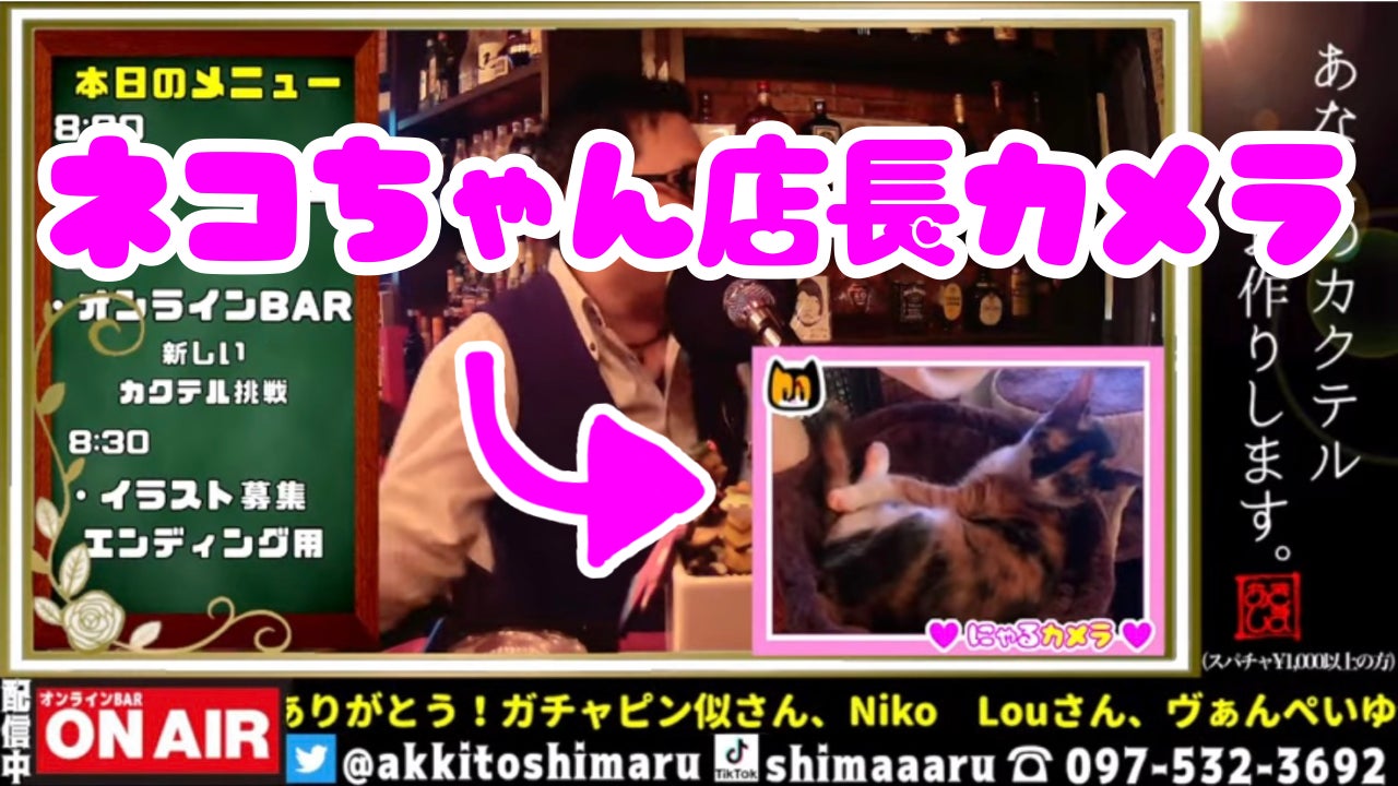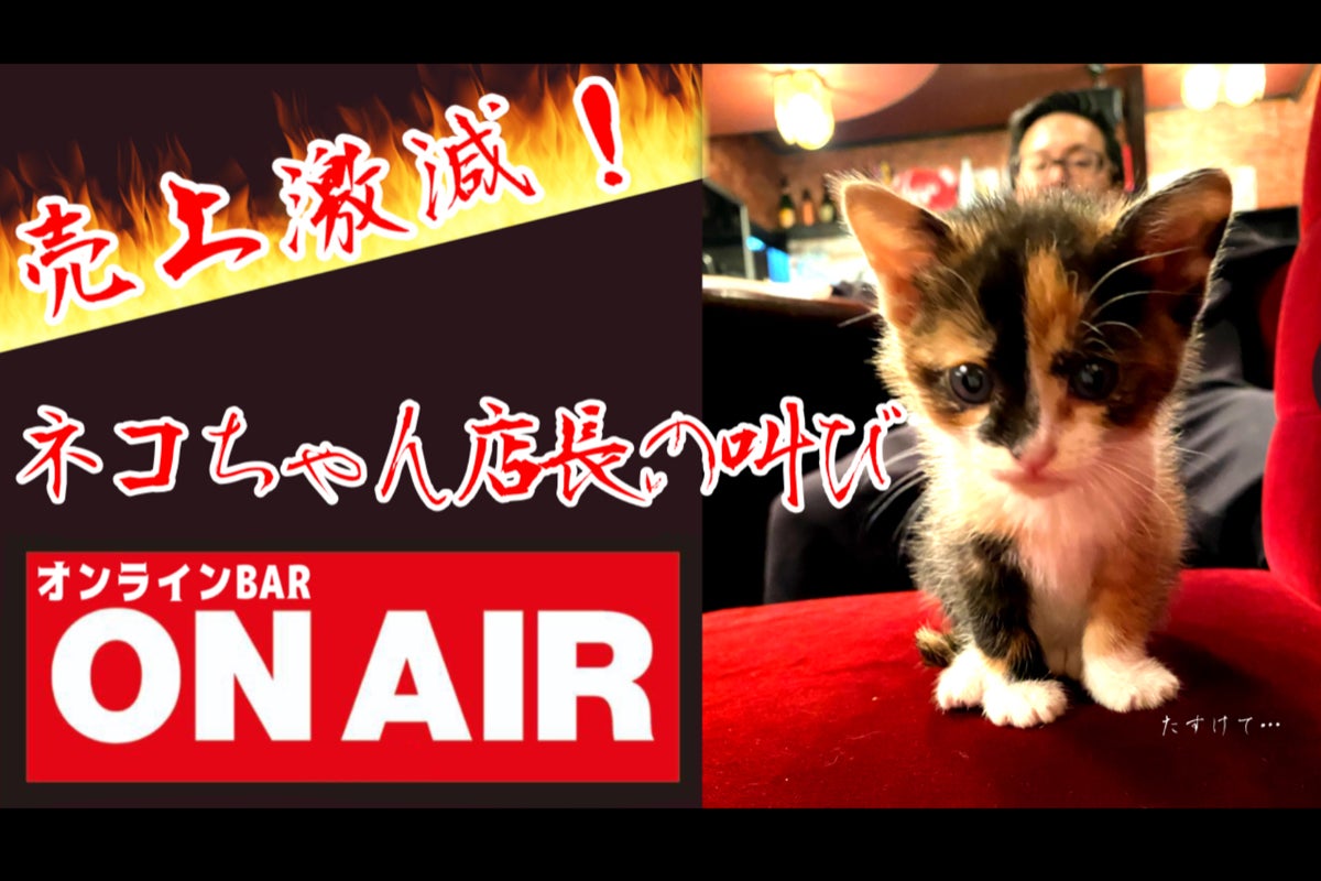 オンラインBAR【ON AIR】では皆様にYouTubeを通じてコロナ禍の中でも楽しさをお届けしたいと思っています。ネコちゃん店長とスタッフ、このお店を守っていく為に皆様のお力添えをお願い致します!