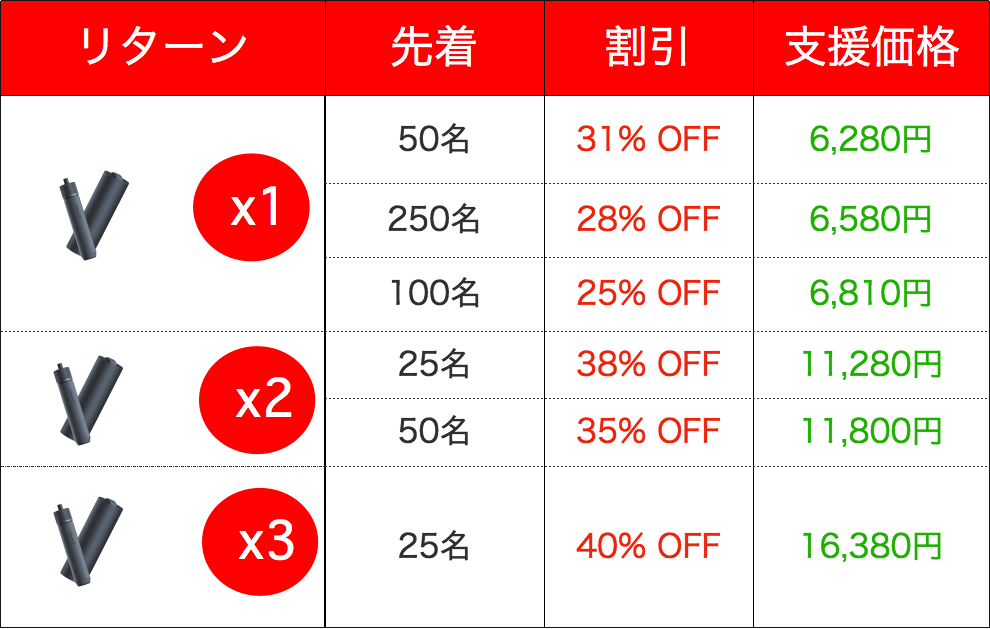 ※想定を上回る皆様からご支援を頂き、量産体制を更に充実させることができた場合、一般販売価格が予定価格を下回る可能性がございます。