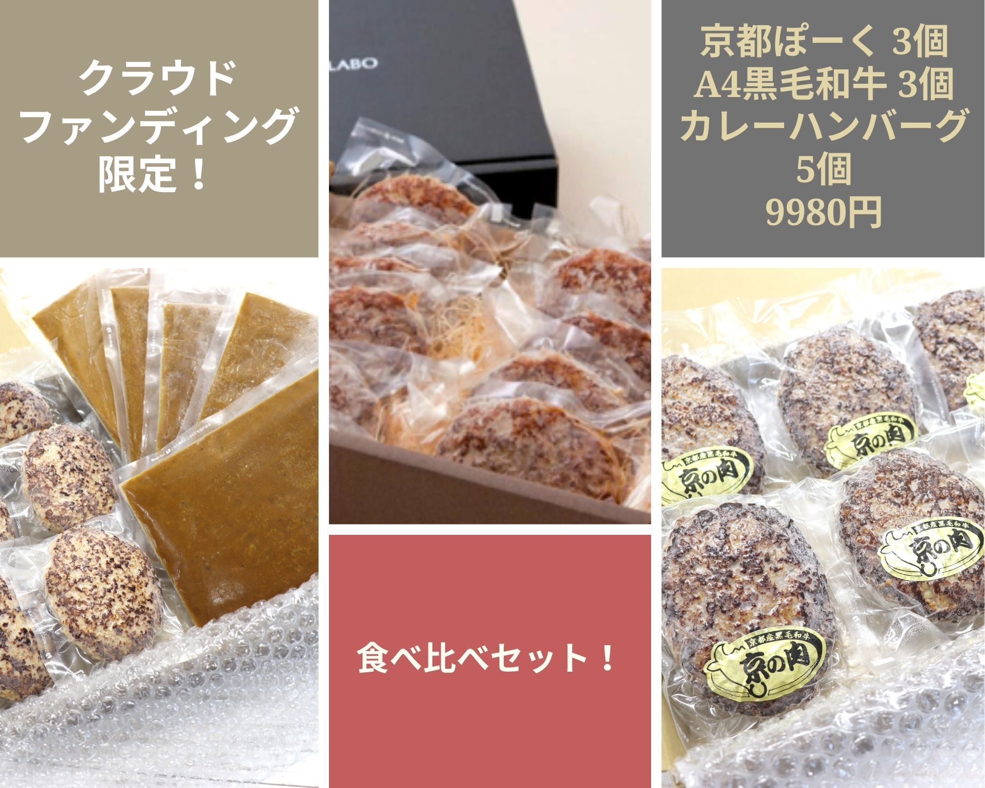 7,食べ比べセット(京都ぽーくハンバーグ 3個/ A4黒毛和牛ハンバーグ 3個/カレーハンバーグ 5個) 9980円