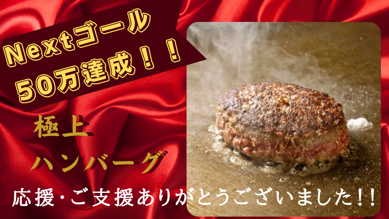 感謝とともに、京都ぽーくハンバーグ、ライセンス加盟店をより知ってもらうために、ネクスト・ゴール 50万円を再設定いたしました。