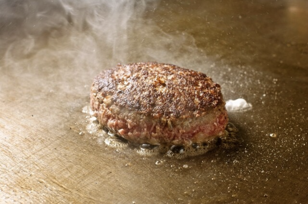 心を込めてこねられたハンバーグは次に鉄板で丁寧に焼き上げられていきます。