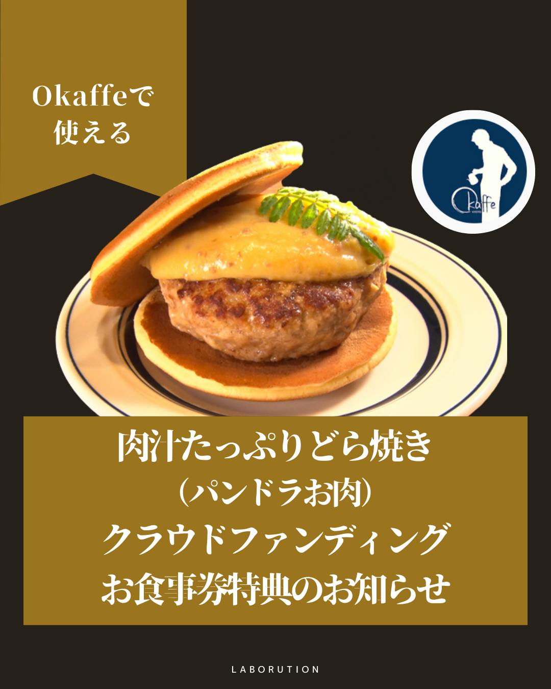 2022/01/17 11:59クラウドファンディングでご支援いただいた方にお食事券特典のお知らせです!1月12日水曜日放送の魔法のレストランにクラウドファンディング協力店であったOkaffeが紹介されました。皆さまはご覧になりましたか??『肉汁たっぷりどら焼き(パンドラお肉)』は京都ぽーくハンバーグを使ったどら焼きになります★どら焼きの生地とハンバーグを繋ぐのは京都ならではの白味噌甘さとしょっぱ味がどんなお味になるかご自身の舌で味わってみてください!食べた人にしかわからない美味しいどら焼きになっていますよ。↓特典はこちらの2つです↓●どら焼きハンバーグ+ダンディーブレンドセット価格で1500円→1400円(100円引き!)実質お食事券1000円分をご利用でお支払いは400円のみ!●単品でご注文の場合 950円お食事券はお釣りが出ないのですが…なんと!!!!Okaffeのドリップコーヒーパックを1つプレゼント!Okaffeの粋な計らいに感謝しかありません。ありがとうございます!この機会に是非お食事券をお持ちの方は肉汁たっぷりどら焼き(お肉のパンドラ)を食べに行ってみてください。 もっと見る