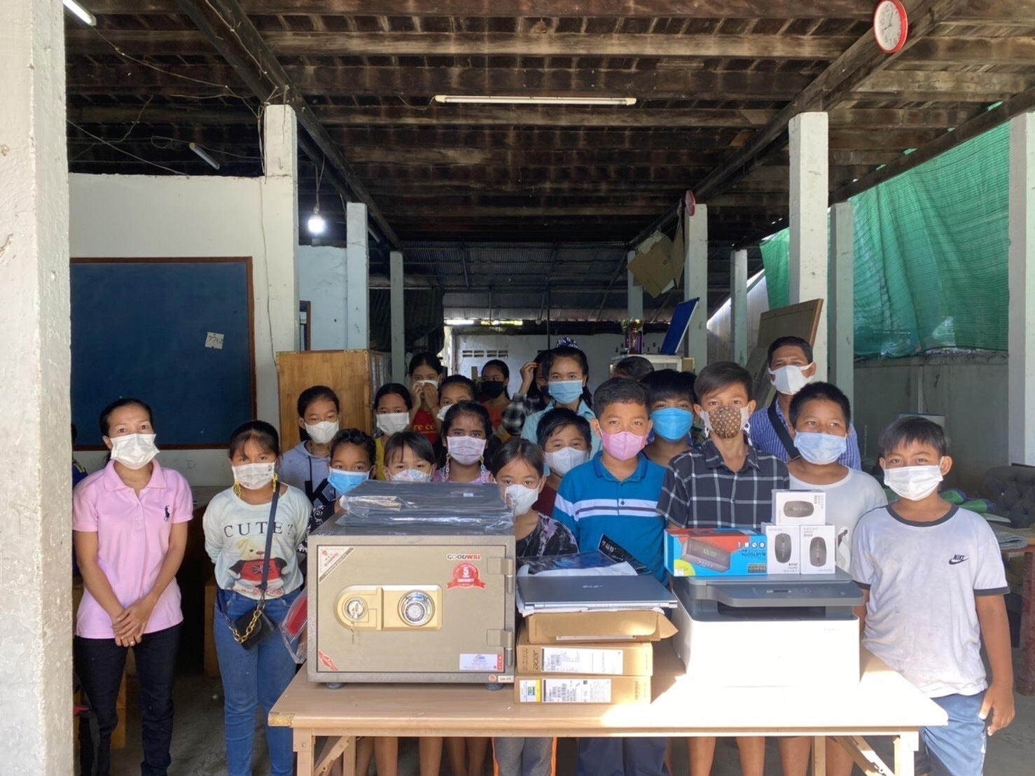 愛センターには警備員がおらず、入口と教材室にカギがかかっているのみです。今まではそれで問題はなかったのですが、現在はカンボジアもコロナの影響を受けて、仕事を失ったり、給料が減らされたりしている人が多く、治安が悪化しています。なので、このカギが壊され、資材が盗まれてしまいました。