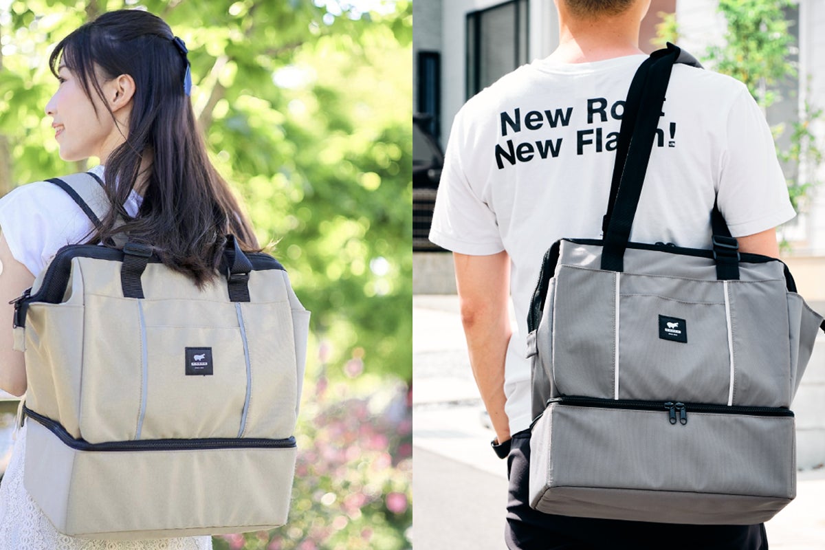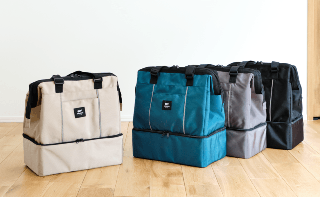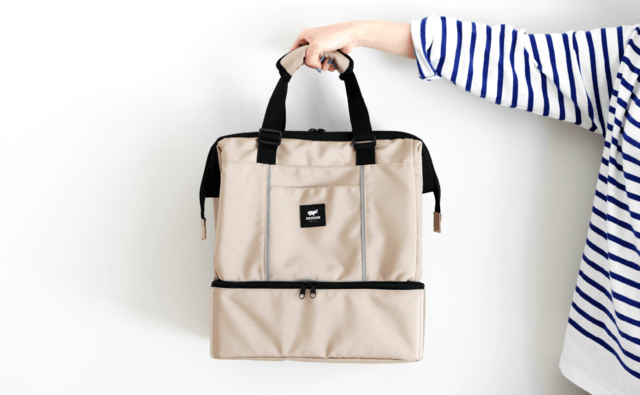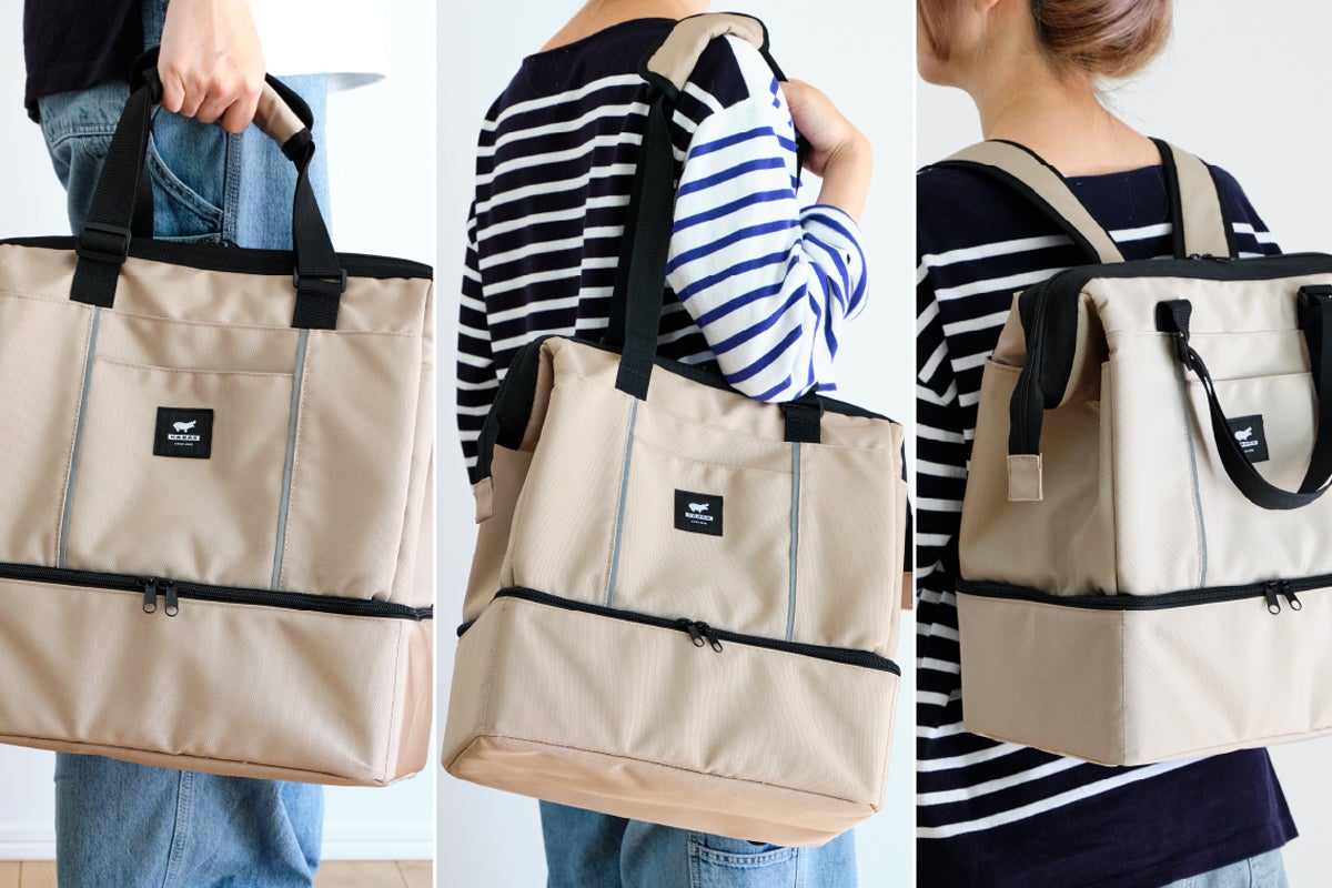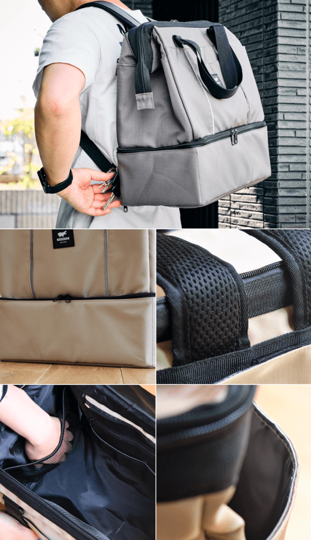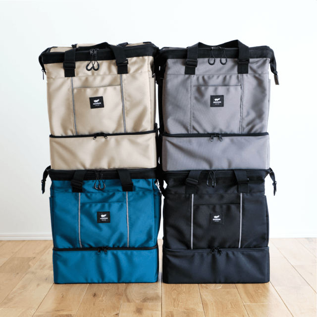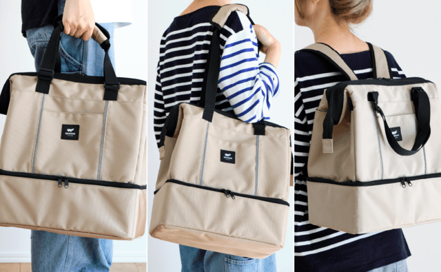 荷物が少ないときの「がま口型」から、荷物が増えたときの「ボックス型」に。両手を空けたいときの「リュック」から、ちょっとそこまで持ち運びたいときの「手提げ」や「肩掛け」に。