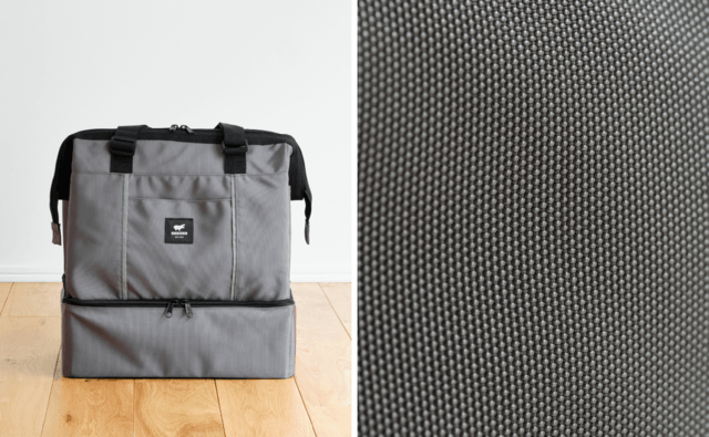 厚めで丈夫な生地を使用し、バッグの中に骨を入れているため、型崩れしにくく、荷物の偏りも抑えられます。