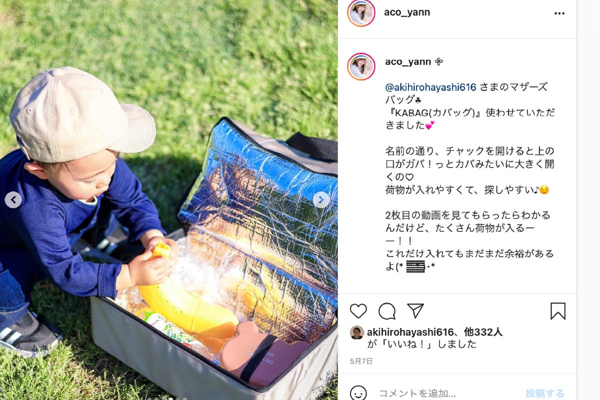 ※ 実際の使用例は、KABAGアンバサダーの皆様にご協力いただいたおかげで実現しました。「ママの声」も合わせてご覧ください。