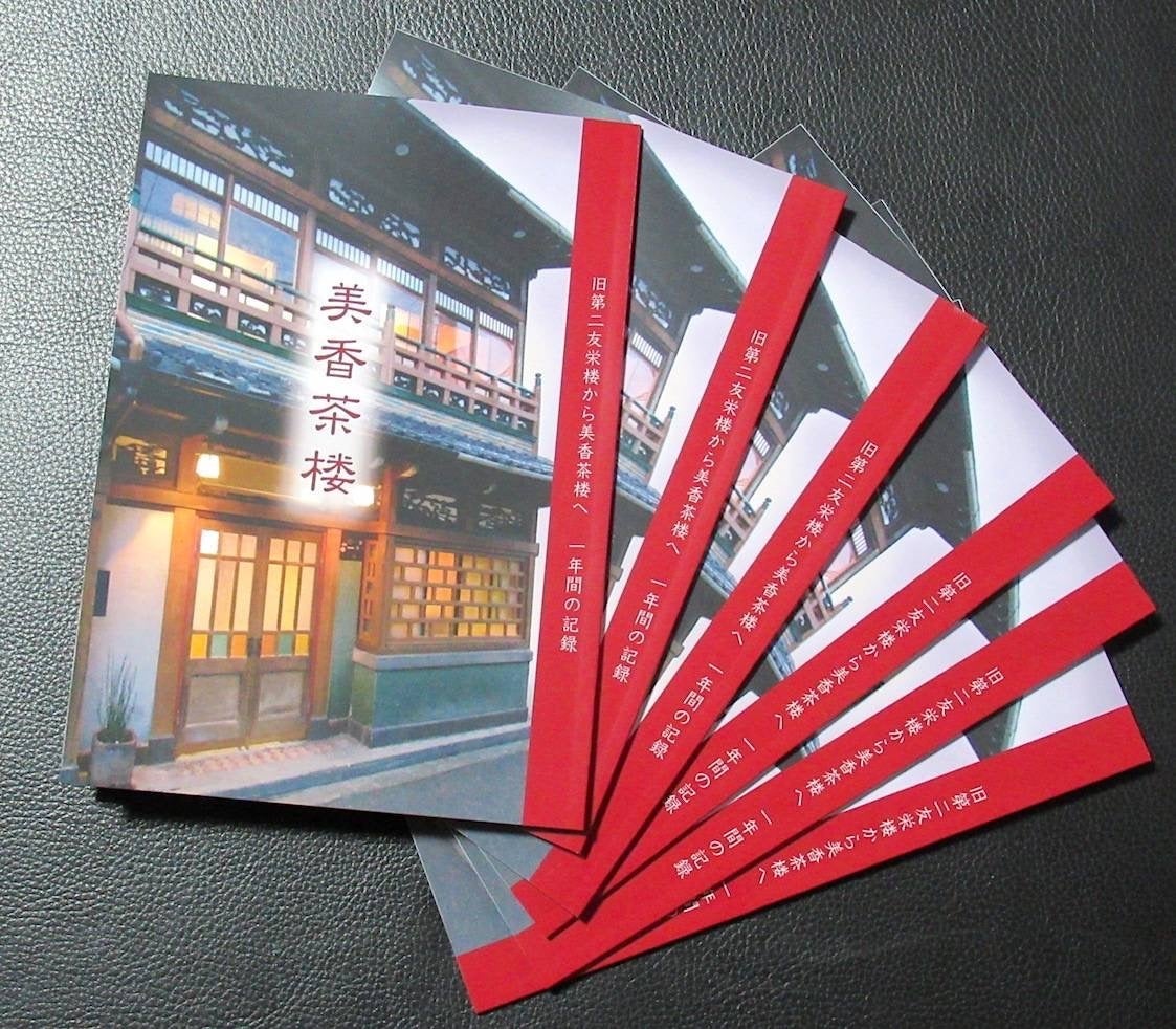 2021/11/21 16:37ご無沙汰しております。妓楼を茶楼に!プロジェクトです。リターンのフォトブックがようやく刷り上がりました。旧第二友栄楼から美香茶楼への移り変わりを収めた冊子として、タイトルは、生まれ変わった後の「美香茶楼」といたしました。絵葉書もまもなく完成予定です。11月28日(日)に橋本にクラファンメンバーが集まり支援者の皆様へのリターン品の梱包作業を行います。当日に京都から発送いたしますので、到着まで今しばらくお待ちくださいませ。このたびは、リターンの発送が1ヶ月遅れますこと、改めてお詫び申し上げます。 もっと見る