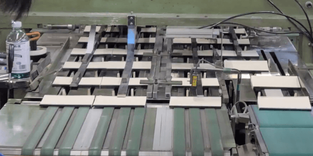 最後に、この長いノートをラインの上からカッターが当てられて分割する機械に通せば、kome-kamiノートの完成です。
