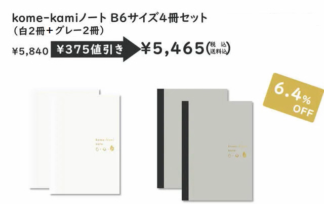kome-kamiノート(白・グレー)B6サイズ