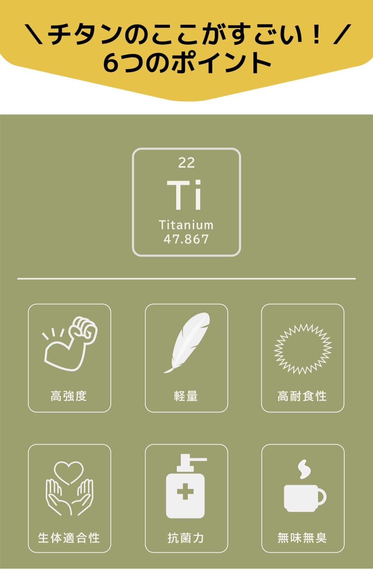 素材:本体(純チタン)/フタ(純チタン、ポリプロピレン、シリコーン)