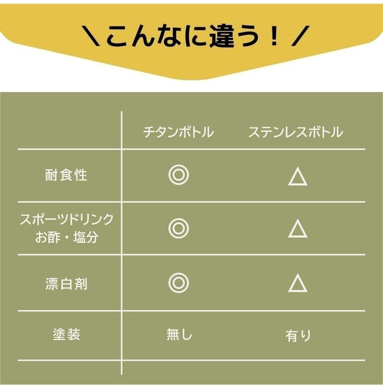 しかし、耐食性の優れているチタンであれば、そのような心配はありません。安全性にこだわるのであれば、ぜひ、チタン製ボトルをおすすめします!