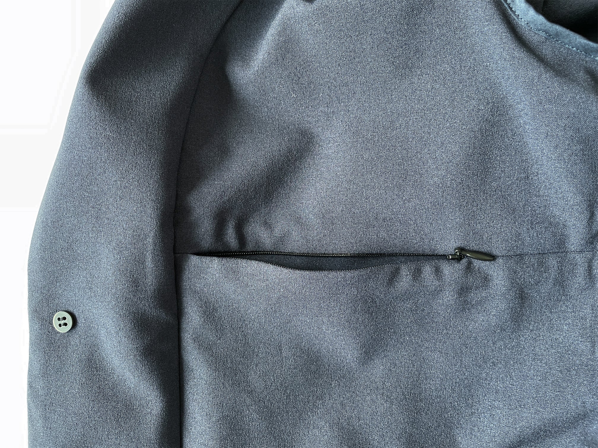 内ポケット、ファスナーをつけることでスマートフォンなどを入れて、ジャケットを脱いで持ち運ぶときに誤って落下や紛失することを防ぎます。