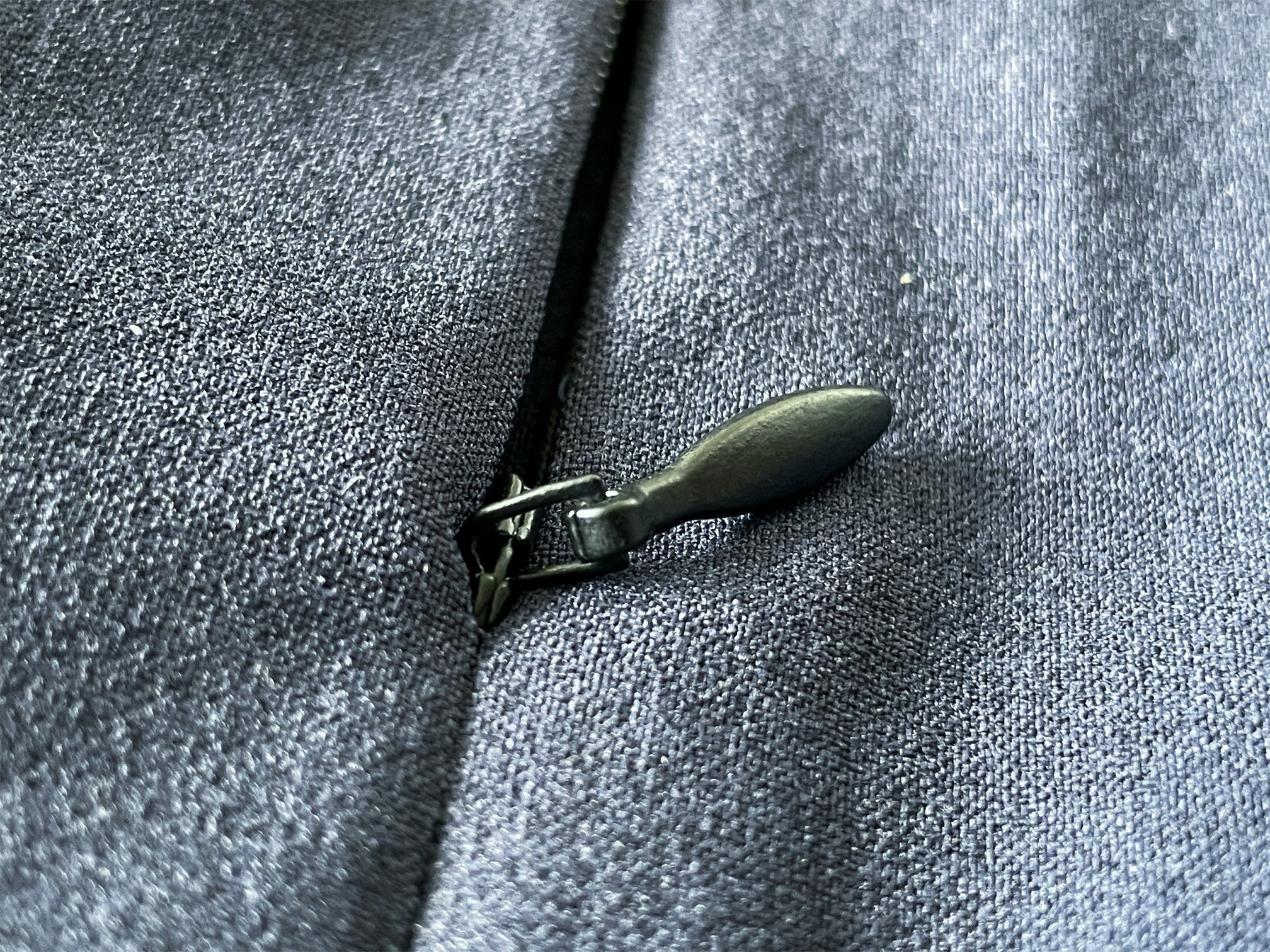 すべてのファスナーにマットブラックのコンシールファスナーを採用しています。見た目もシンプルで目立ちません。