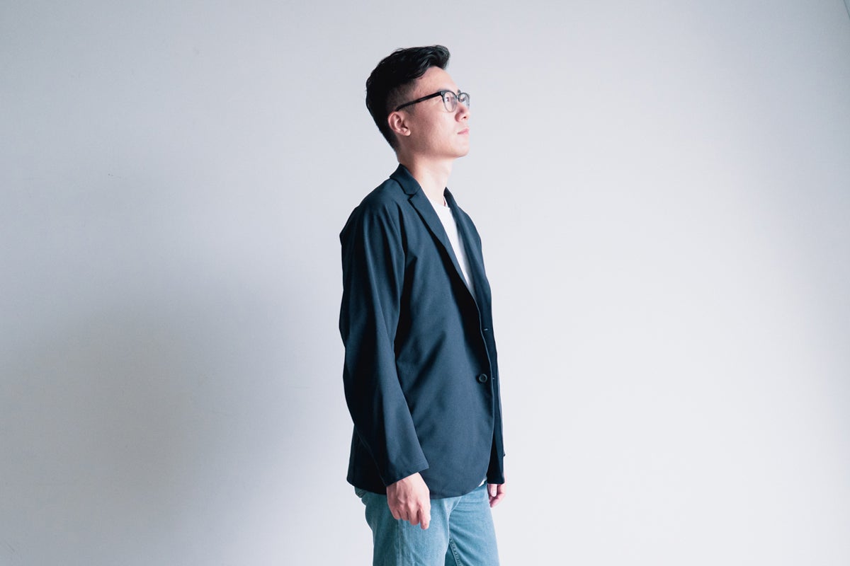 New Normal Jacketには、肩幅という概念はありません。素材もストレッチが効いている素材なので、見た目以上に快適な可動域を実現しています。肩幅がないため、体型や性別に縛られることなく着て頂けます。