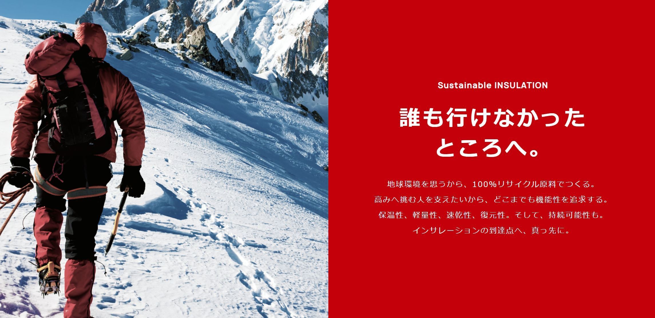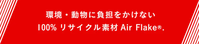 100%リサイクル原料で作られ、限りある天然素材の羽毛に頼ることのないエアーフレイクは、まさにサステナブルな社会の実現に貢献できるインサレーションなのです。