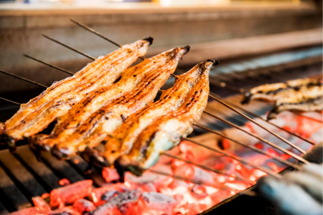 うなぎは一切蒸さず、自社ブランドの備長炭の強い火力で短時間かつ繊細に。
