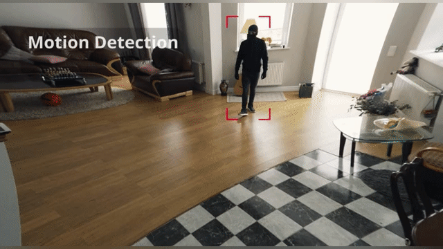 動体センサーがカメラの前を横切る人間の動きを感知すると自動的に録画を開始、スマホに通知をプッシュ、WiFiを通じてどこにでもリアウタイムリーに異常を把握することができています。