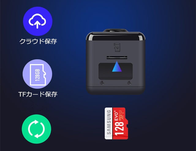 8-128Gのメモリカードを対応しています。容量不足の心配がありません。たくさんの鮮明な動画を保存できます。上書き録画対応、メモリカードがいっぱいになると、自動的に古いファイルを上書きし、新しいファイルを保存します。