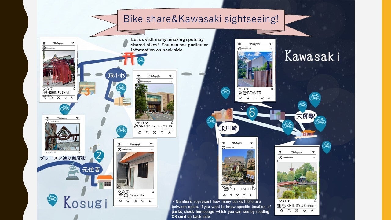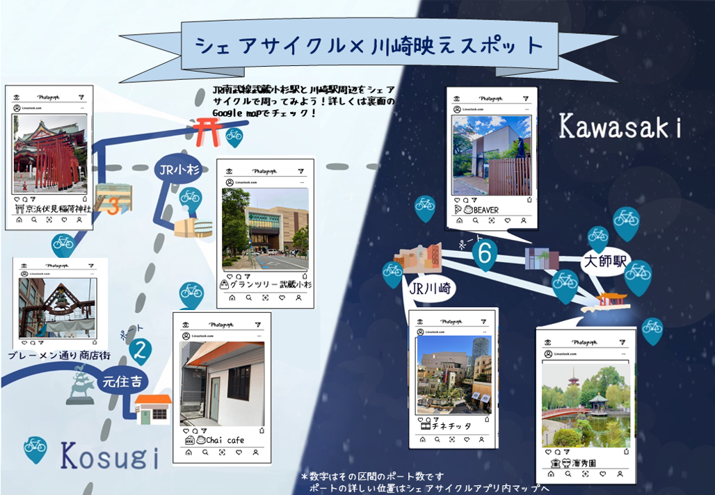 夏頃に列島を襲った台風、あれによりシェアサイクルの利便性は明らかになりました。タクシーが来なくても、自転車はあります。あなたの愛用の自転車がパンクしていると朝気づいたとき、シェアサイクルはあります。これほど便利なものを知らないのは損以外の何物でもございません。シェアサイクルの普及、ひいては川崎市、地球の発展に、お力添えをお願いいたします。