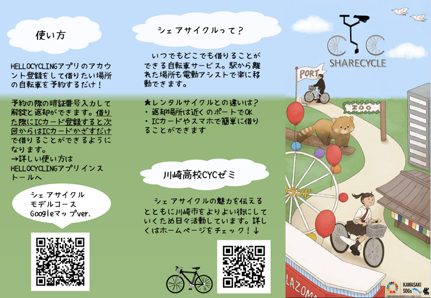 はじめまして。私たちは川崎市立川崎高校の高校生です。総合の時間を通して去年から二年間に及びシェアサイクリングについて研究を続けてまいりました。