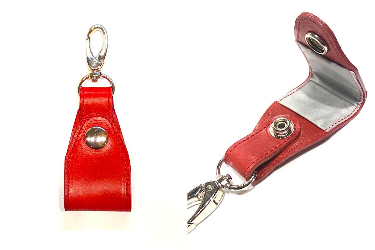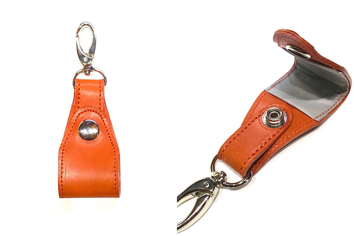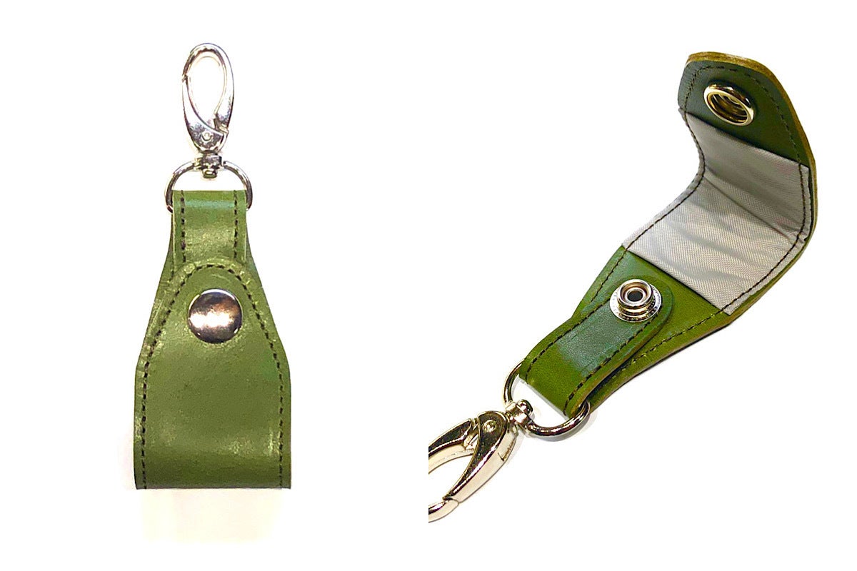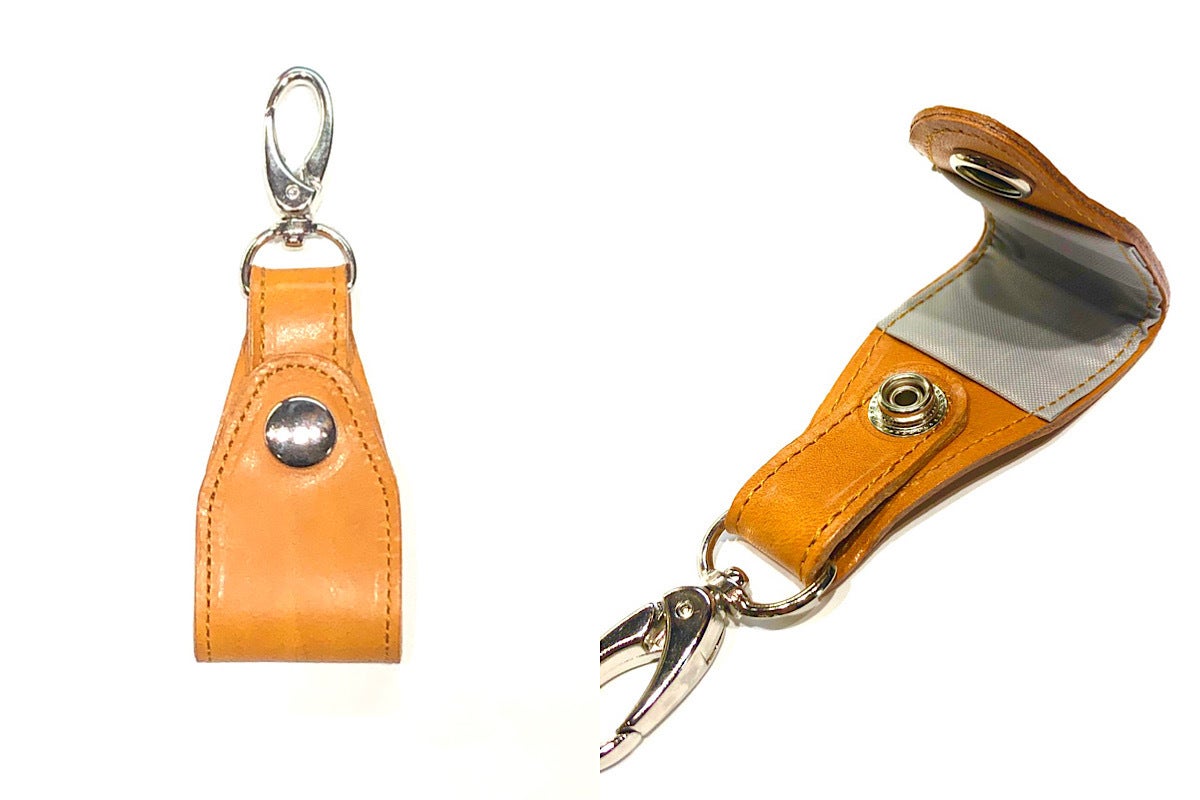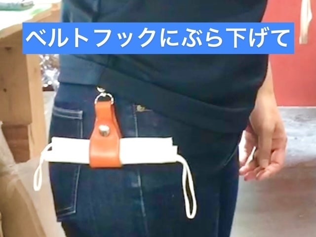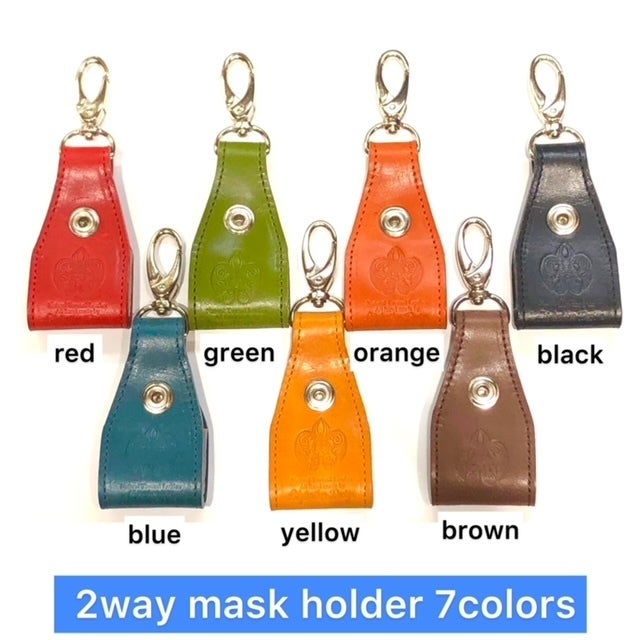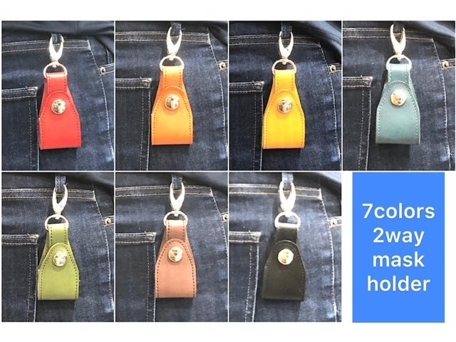 ①、②、③の理由で発生する余り革が「もったいない・・・」。もちろん余った革は捨てずにストックして、革小物(名刺入れやキーホルダーなど)で使用したりしますが、積極的に余り革を活用したいと思い、コロナ禍のマスク生活に「とっても便利なキーホルダータイプのマスクホルダー」を開発しました。