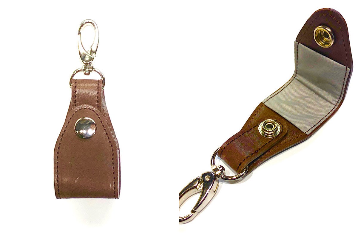①、②、③の理由で発生する余り革が「もったいない・・・」。もちろん余った革は捨てずにストックして、革小物(名刺入れやキーホルダーなど)で使用したりしますが、積極的に余り革を活用したいと思い、コロナ禍のマスク生活に「とっても便利なキーホルダータイプのマスクホルダー」を開発しました。