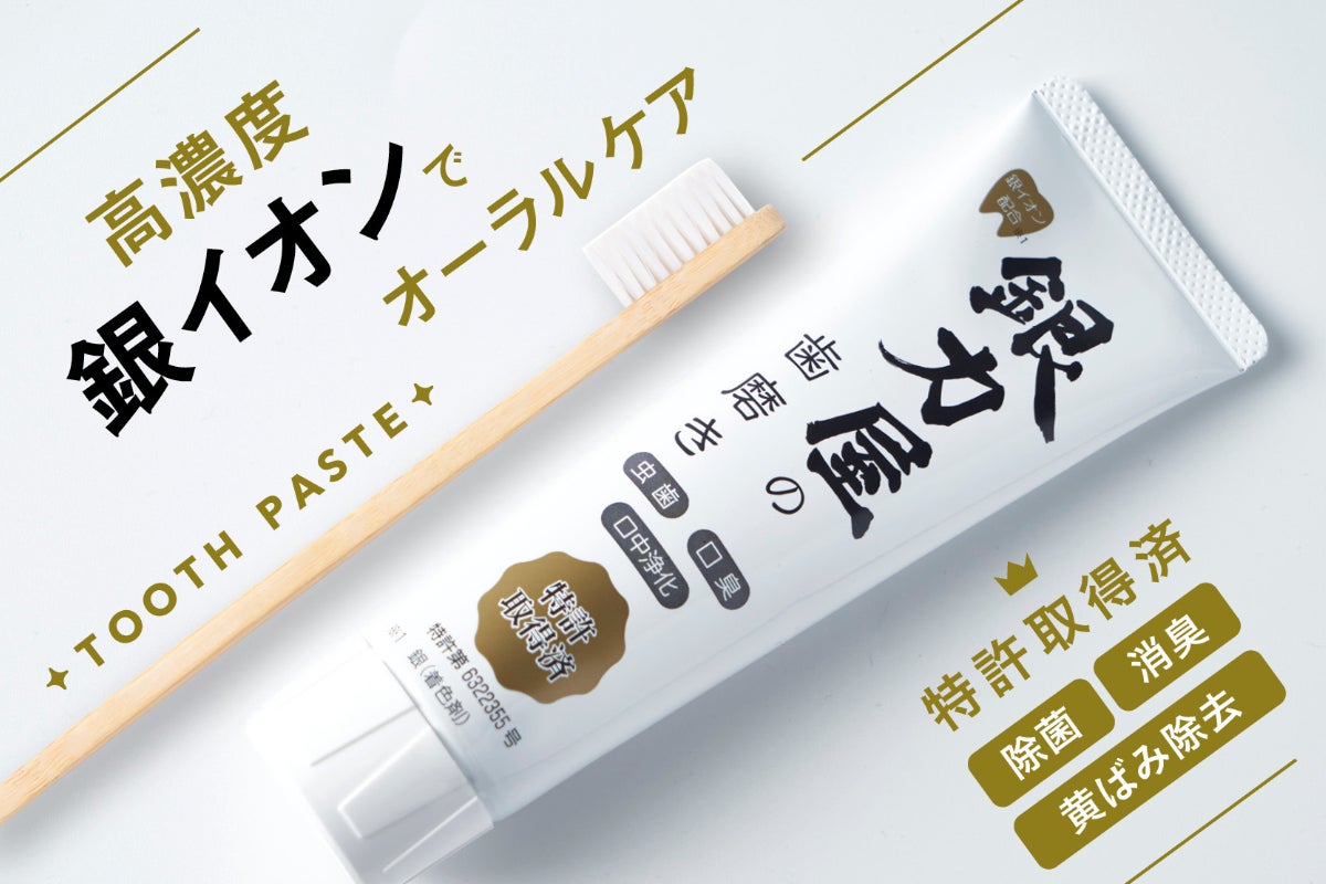 そんな想いから、当社の長年の銀イオン研究技術を詰め込んだ歯磨き粉「銀力屋の歯磨き イオンクリーントゥースペースト」を作りました。