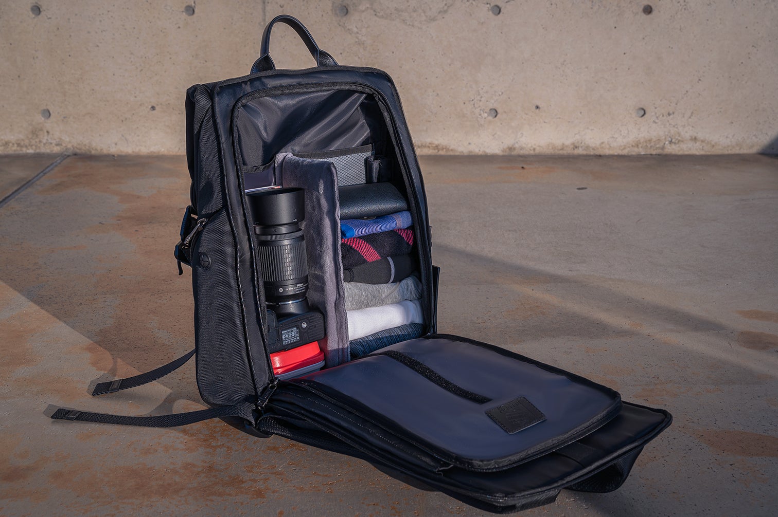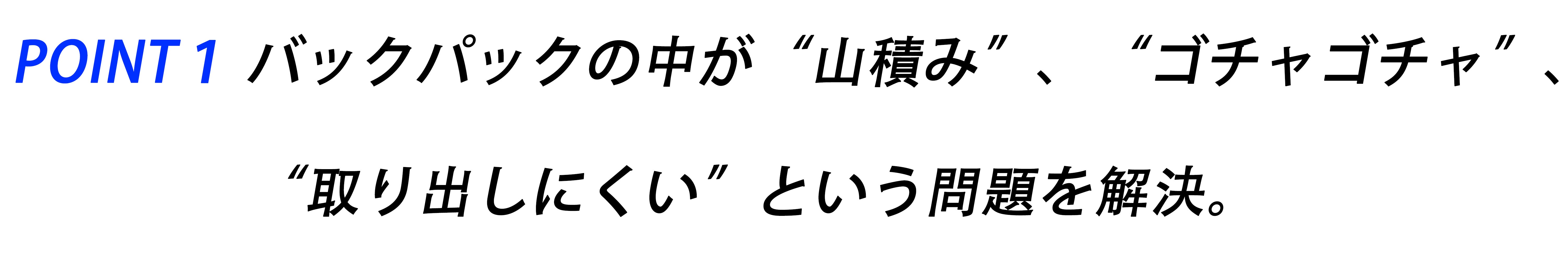 メイン収納が大きく作られたバックパックは大きい荷物を運ぶ時、両手が空いて便利に感じられますが、バックパック特有の悩みとして、中がゴチャゴチャになり、底の方の荷物が探しにくく、細々した物を分類収納できないという問題がありました。