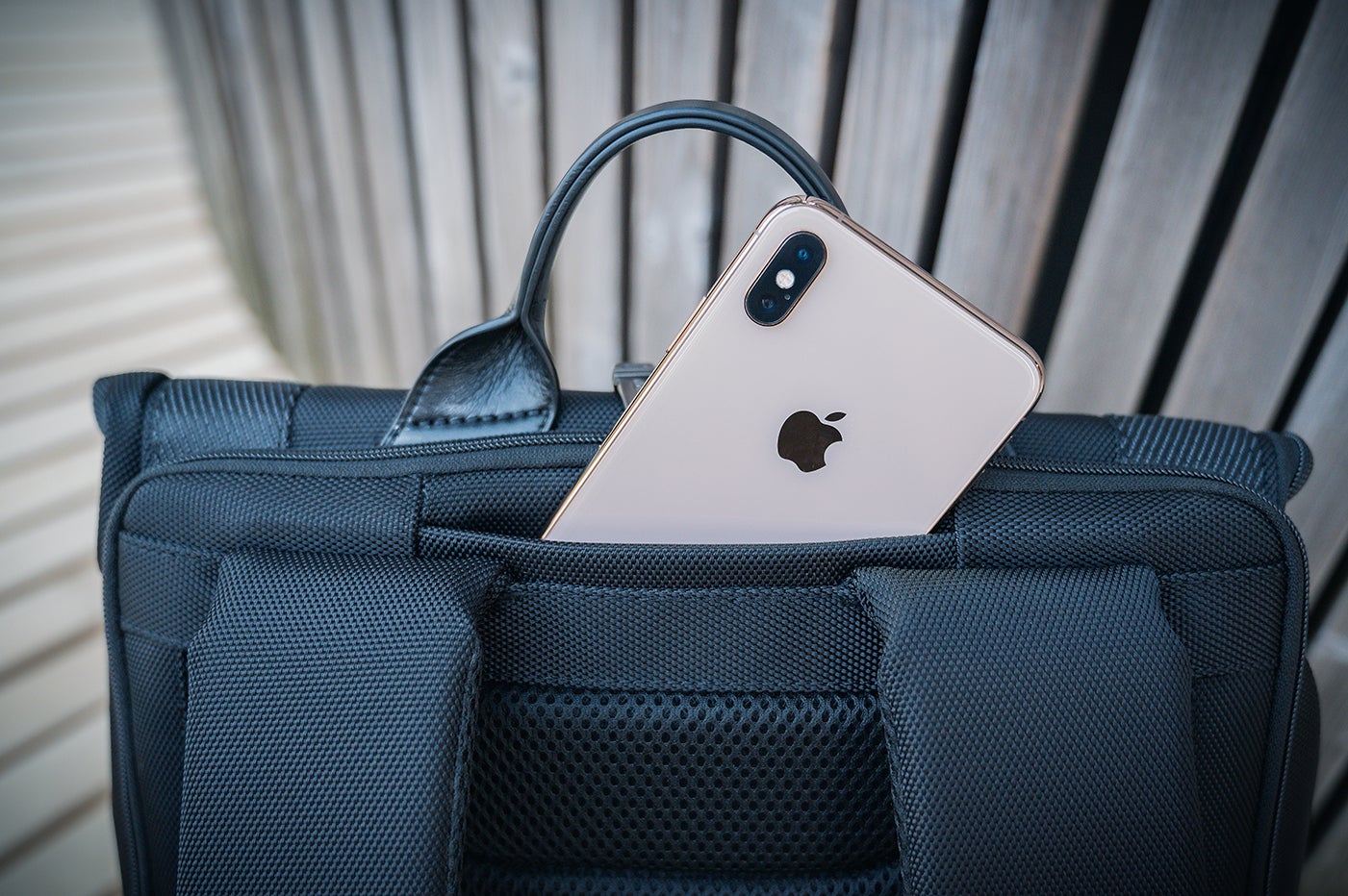 上部の取手部には、携帯電話専用のポケットがあり、携帯を素早く取り出せます。