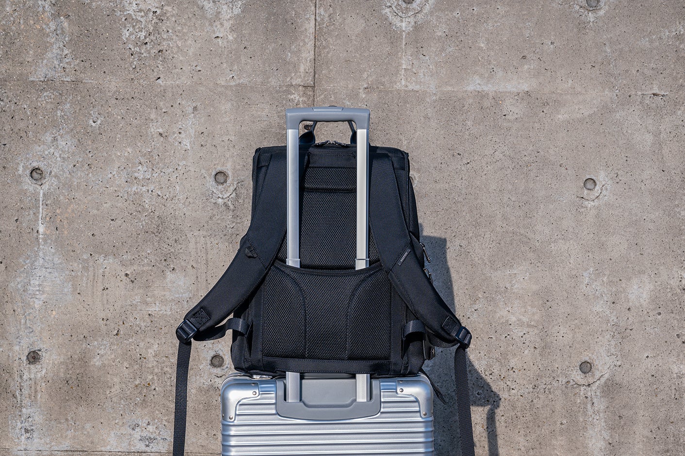 出張や旅行時には欠かせないキャリーハンドルポケットも完備。