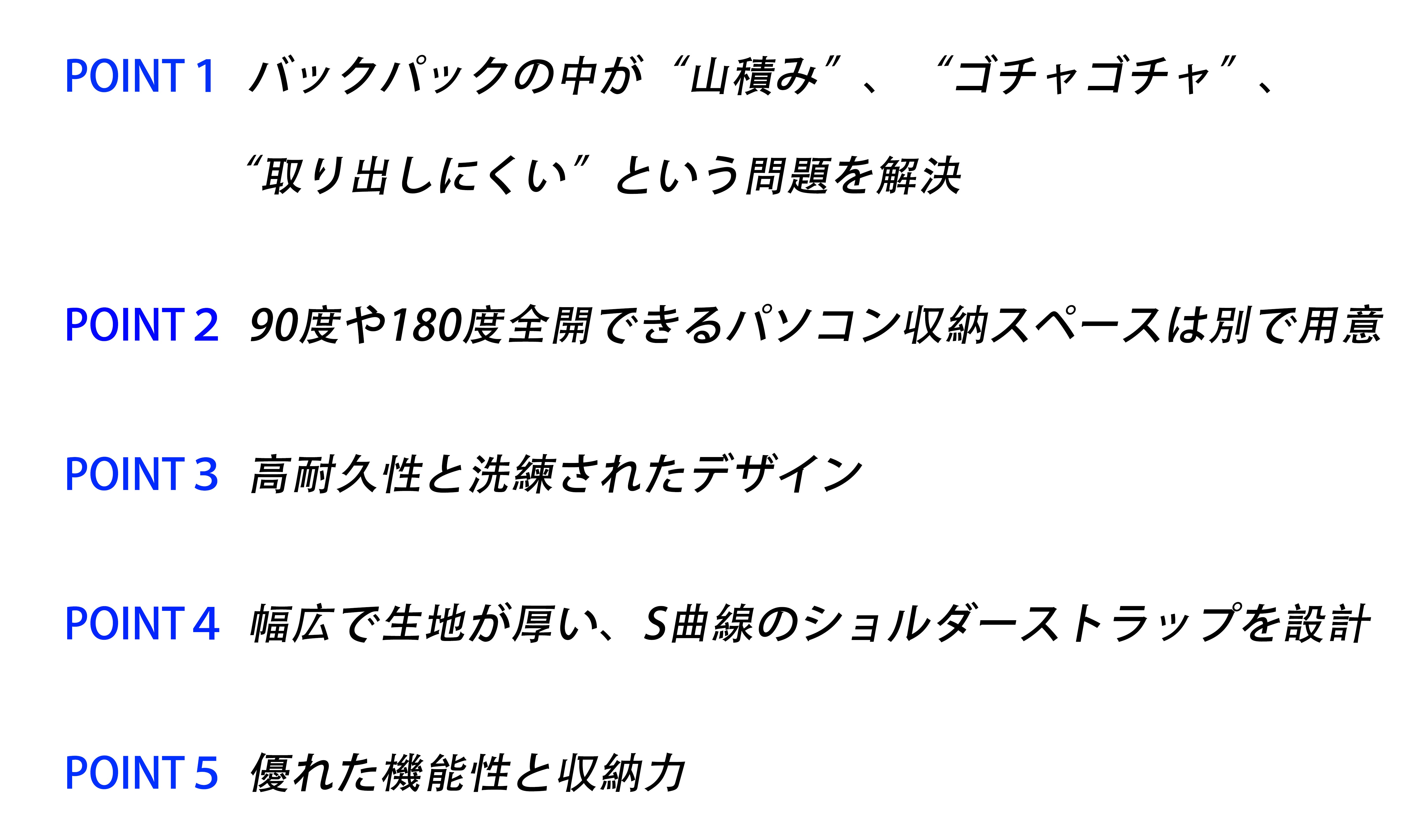 このバックパックにはまだまだ足りないところが沢山あります。皆様の貴重な意見を頂けますと光栄です。皆様の貴重な意見を参考にし、今後皆様にとってもっと使いやすく便利なバックパックになるよう改良していきたいと思っております。