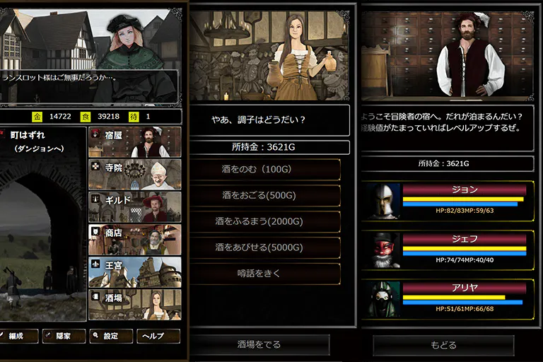パーティーメンバーとなる冒険者は、町の酒場でリクルートします。腕っぷしの強いドワーフ、魔力の高いエルフ、信仰心に厚いノーム、平均的な能力を有するヒューム・・・どういった冒険者が仲間になるかは、運次第です。