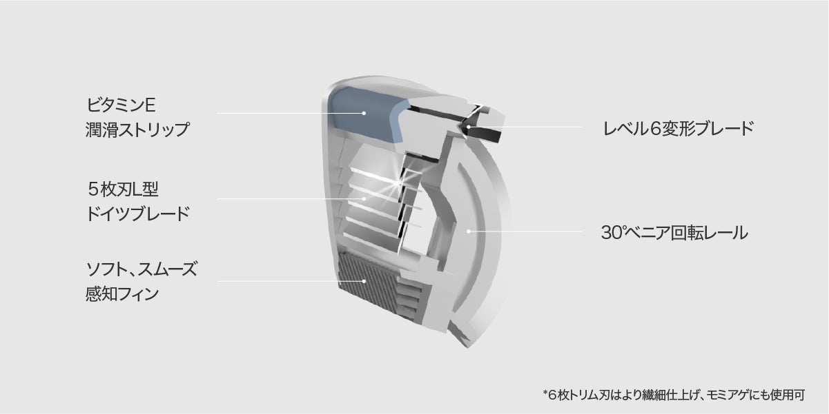 5枚刃は1枚刃より肌にかかる圧力を分散し、カミソリ負けなどの肌ダメージを防ぎます。