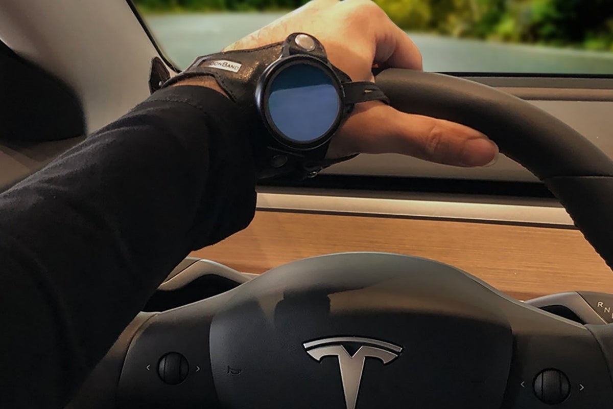人間工学に基づき、見やすい位置でスマートウォッチを固定。