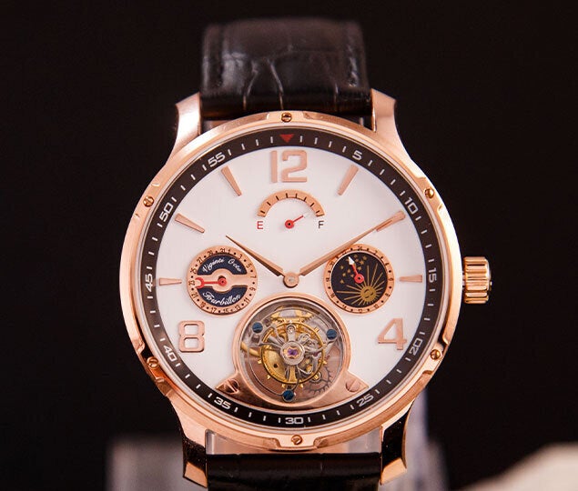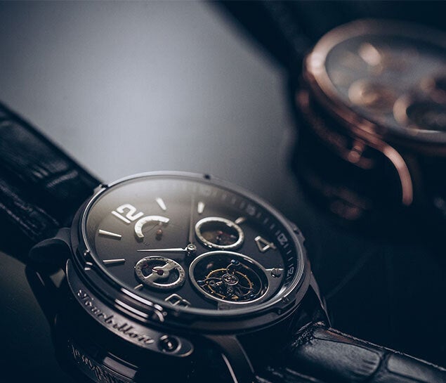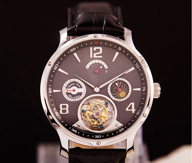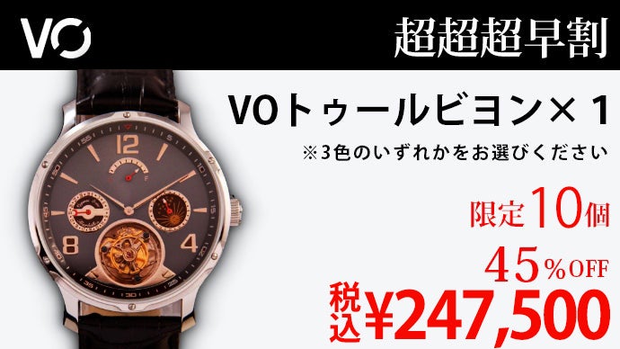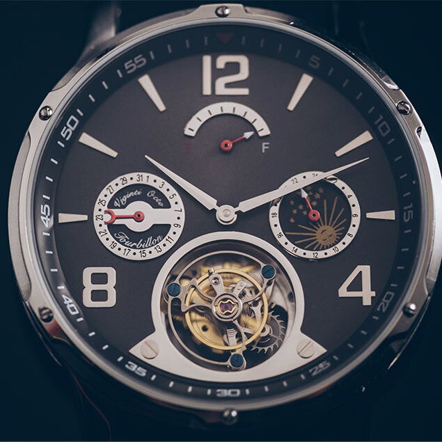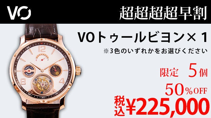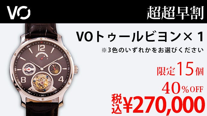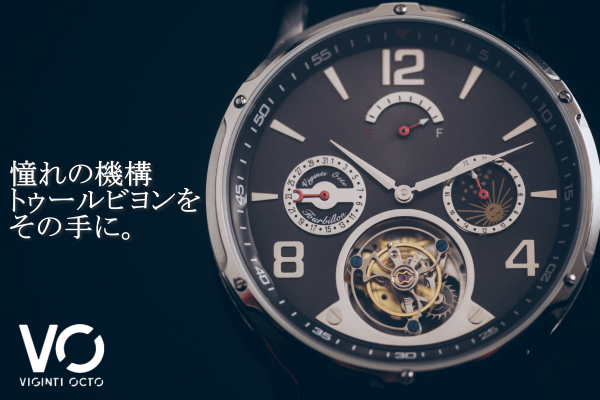 機械式腕時計の楽しさを極めた複雑機構トゥールビヨンムーブメント。VOトゥールビヨンはこの洗練された美しいムーブメントを採用、さらにカレンダー機構、サン&ムーンダイヤル付きの24時間GMTスモールハンド、そしてパワーリザーブという機能性も合わせて備えた腕時計です。