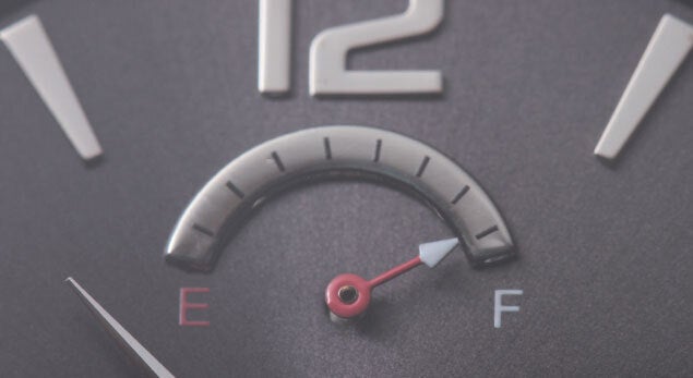 自動車のガスメーターに似てEmptyの「E」と、Fullの「F」。「E」はあえての赤。