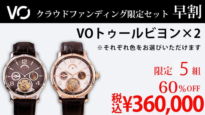 2021/10/25 10:10サポーターの皆さまこの度はVOトゥールビヨンに多くのご支援をいただきありがとうございます!当プロジェクトは10月24日を持って終了となりました。最終的に450,000円の支援金が集まりました。改めて深く御礼申し上げます。ありがとうございました!VOトゥールビヨンを、1日でも早く皆様のもとへお届けできるようスタッフ一同、引き続きプロジェクトを進めて参りますので、今しばらくお待ちください。生産状況など、随時活動報告にてご報告させて頂きます。引き続き、よろしくお願いいたします! もっと見る
