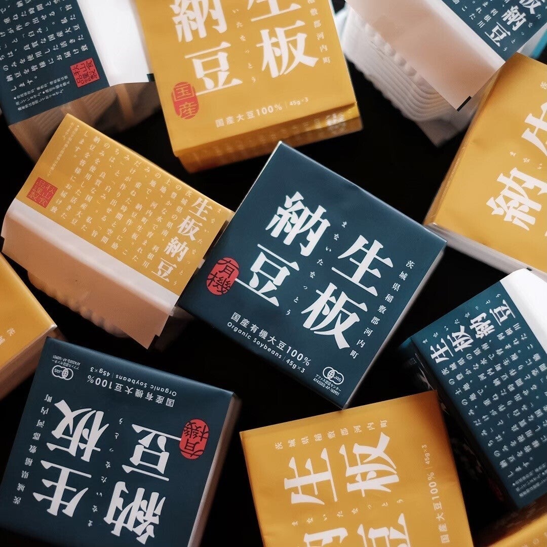 ●生板納豆は国産有機タイプ(青緑色系)と国産タイプ(黄色系)の2タイプでお作りしています。