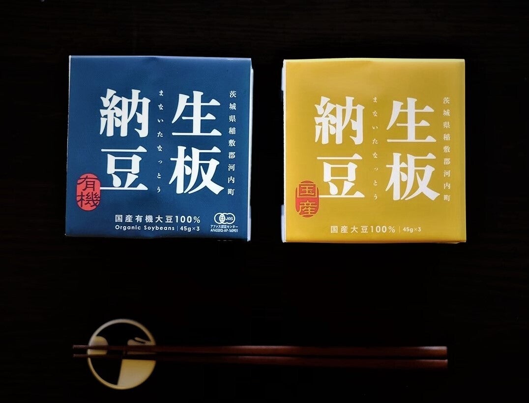 ●生板納豆は国産有機タイプ(青緑色系)と国産タイプ(黄色系)の2タイプでお作りしています。